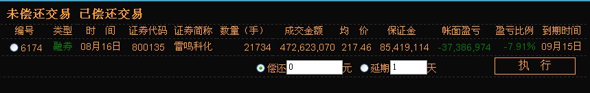 我们将一次次将雷鸣科化按在跌停板上。我们还拥有第五纵队,将成为铲平雷鸣科化最后一根稻草。再次提示朋友们不要大量参与融券。想投机风险控制在自己能承受范围内。