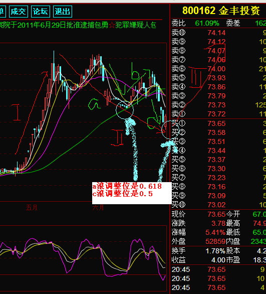 随着“李明案”的调查,晚上金丰展开了一轮立功反弹行情。为了让大家清晰地看清金丰的走势,我画了金丰里的波浪理论,从39元起步到106元,是一轮上升行情中的第 ...
