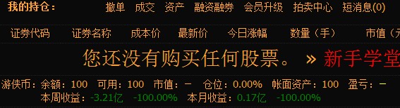 淡出游戏期间,所有股票锁仓,不参与任何争斗,希望各位朋友玩的开心。