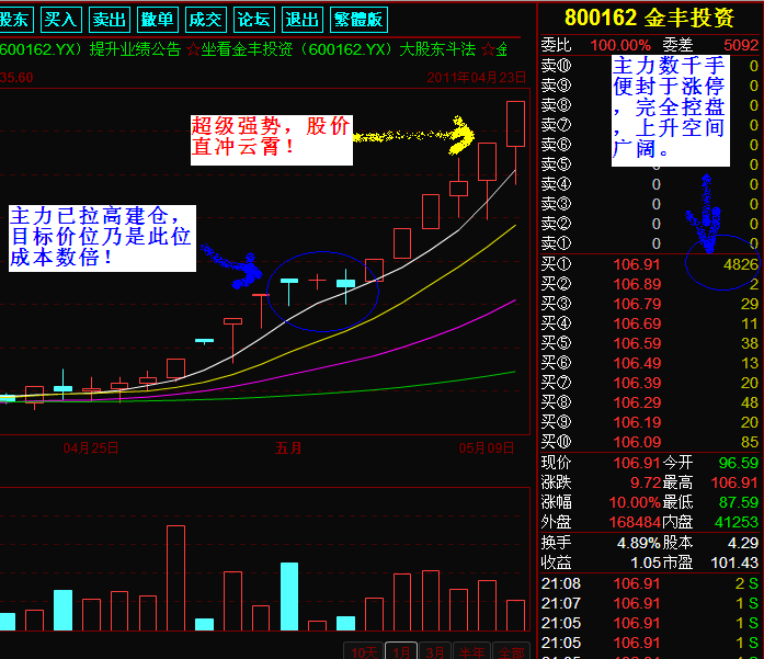 各位投资者大家好!好久没有和大家见面了,作为回馈新老股民对本人股评的热爱,本人强烈推荐一只股价直冲云霄的金股——金丰投资,该股通过拉高建仓,主力资金雄 ...