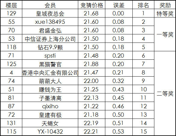 竞猜活动原地址:https://www.youxiagushi.com/main/viewthread.php?tid=407295建投能源(YX800937)6月1日收盘价:21.68,恭喜 @皇城夜总会 准确猜中,获得特等 ...