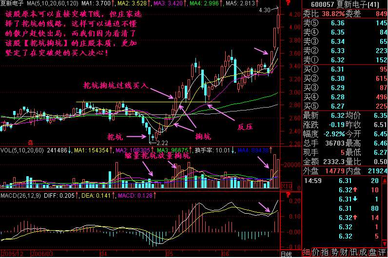 双炮过河图中三个股价高点C、D、E连成一条直线,直线下有许多K线,犹如中国象棋中的汉界楚河,K线要杀过楚河才能涨,这显而易见。怎么杀过去呢?这里采用“双炮 ...