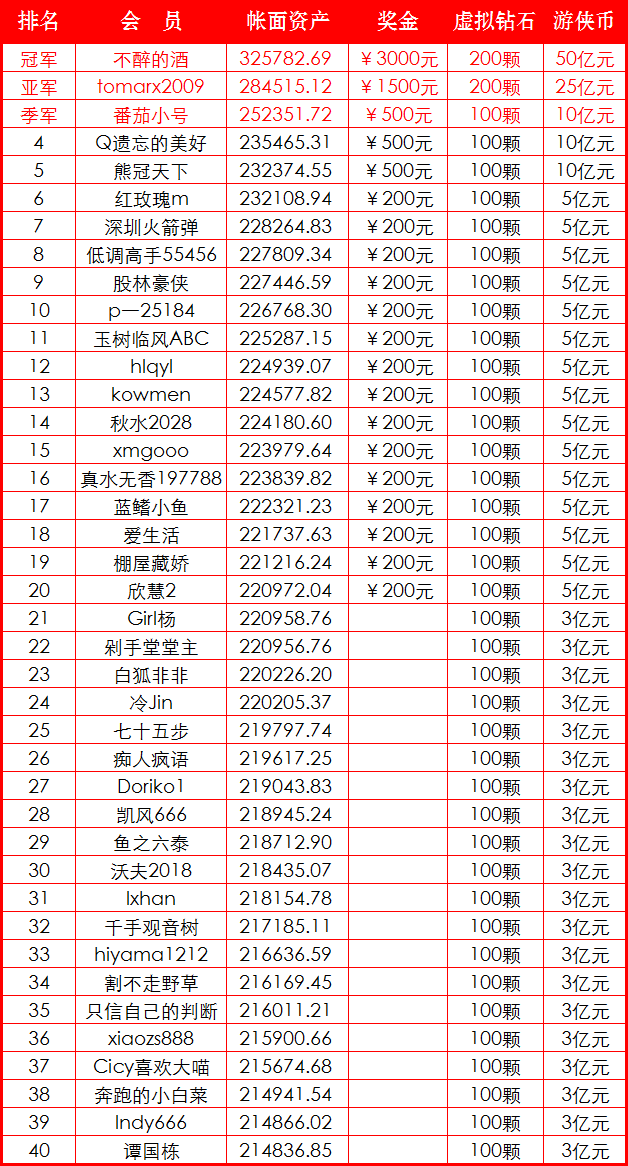 “游侠股市第五十一届模拟炒股大赛”于2019年11月8日结束,获奖名单于2019年11月8日至2019年11月13日在游侠股市网站公示,公示期间无人提出异议,现将正式获奖名 ...