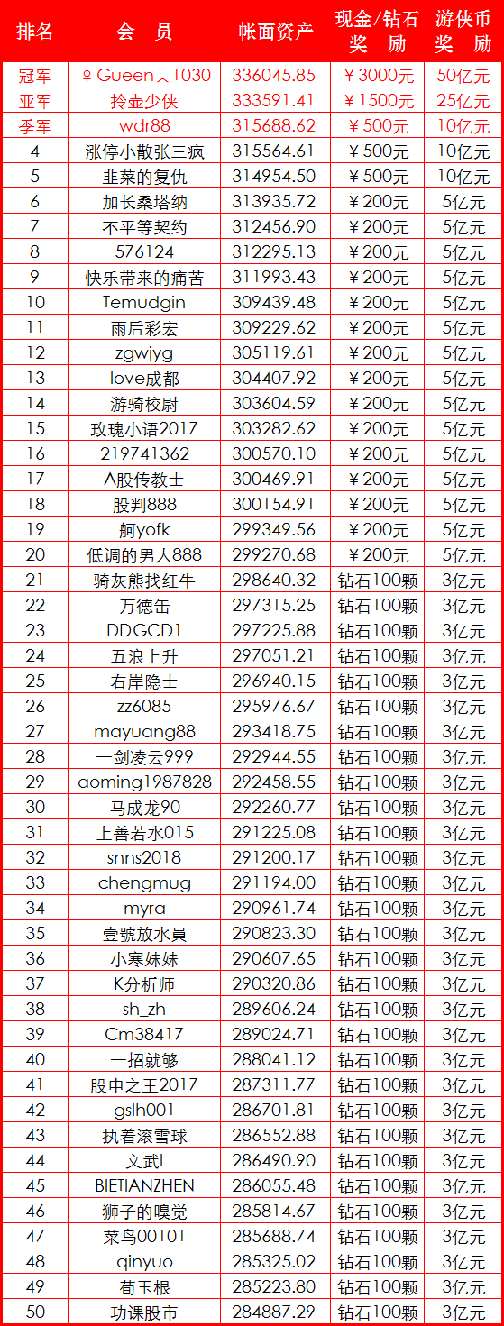 “游侠股市第五十届模拟炒股大赛”于2019年9月6日结束,获奖名单于2019年9月6日至2019年9月11日在游侠股市网站公示,公示期间无人提出异议,现将正式获奖名单公 ...