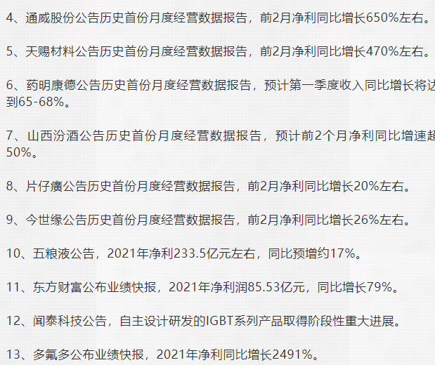 历史上首次啊,山西汾酒、通威股份、片仔癀、药明康德、天赐材料、今世缘、五粮液、东方财富、多氟多、沪硅产业等,累计超20家公司发布1-2月业绩,大家可以看看 ...
