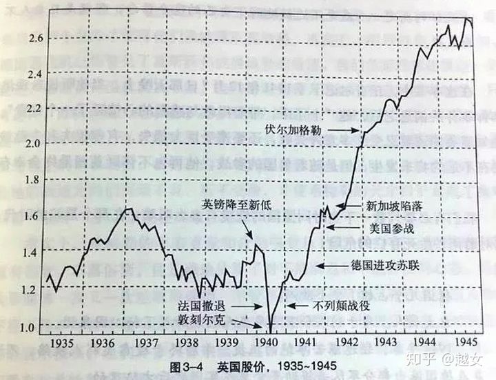 德国股市在1941年前入侵苏联见高处,可见资本市场非常不看好德国东扩,1943年伏尔加河格勒战役失败,市场开始管制,1944年停市,1948年重开时跌去七成,次年大反 ...