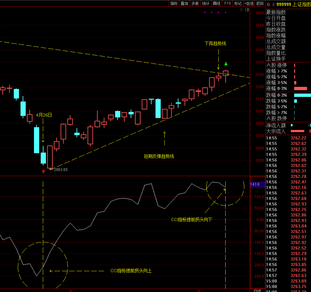 CCI顺势指标扫描到大盘异常波动,今天已经发出信号了,开始拐头向下了!