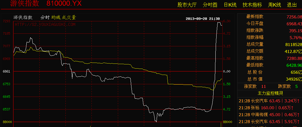 8.31,9.3日股指曾两次触及涨停,正当大家认为双针见顶时,9.7日股指迎来了重要的一日反转,9月10日迎来第一个涨停板。至此展开了一段大牛之世。首先领头羊为新华,次之为长安,攻坚则是华泰(号称第一阶段的股指三驾马车)。然而中坚力量为电力,徐工,张裕,苏宁,酒钢,云商等。后起之秀为中南。有色。热点频繁转换,估值上限接连被破,游侠的新秩序俨然形成。既有酒钢上限翻倍,又有张裕慷慨分红,还有长安强拉融券,更有交割日的尾盘绝杀。