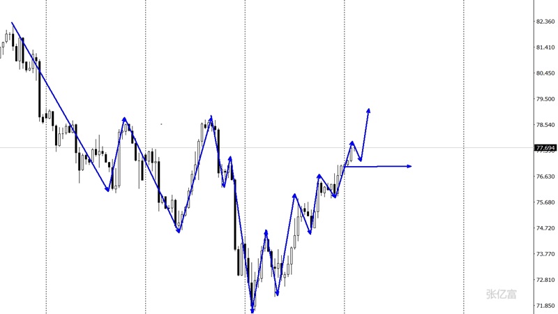 均线78.2形成的压力区域,其次关注前高79.1位置,周线MA30MA60均线略微上移承压79.5一线,今日仅以76.5-76区域得失来判断强弱,若向下破位则关注日线MA5MA10均线粘合支持点75关口,4小时布林带下轨74.5支撑节点算是偏差防守点。综合以上分析,张亿富认为:原油