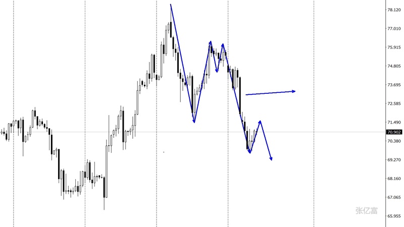 处于区间徘徊,布林带处于开口向下运行中,当前阻力位关注71.3美元一带,如果意外出现上破将有望考验前期下破点阻力位72.0。综合以上分析,张亿富认为:原油空头下破后,出现了窄幅震荡,进一步表明多空在激烈争斗中,但是多头无力向上,将出现空头直接下破。后市操作上考虑反弹做空为主,低多为辅,上方关注71.3-72.0美元阻力,下方关注69.5-68.5美元支撑。