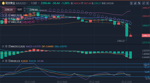黄金消息面分析】:周三(5月22日)美市盘中,现货黄金