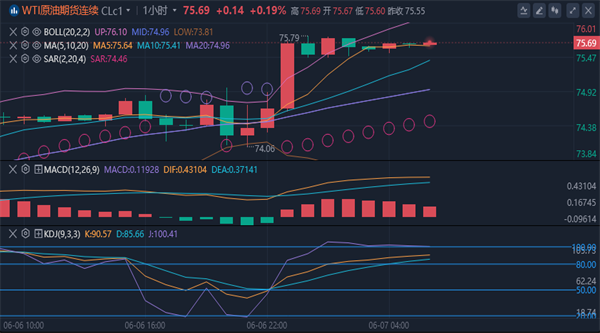 (美原油(美原油06,93.71,0.74%,模拟交易)05,102.34,0.77%,模拟交易)技术面分析】:原油上周五下探回升收高,周内连跌四日,上涨一日,惯性下探后之后继续回升区间之内,收回77.0上方,局部继续围绕低点之下拉锯震荡,三次下探回升。继续稳固了低点区域的支撑,本周72.0-76.6依旧是关键。三次测低回升,是构造底部回升还是蓄势破低走弱,留意低点与颈线间的争夺,决定后市方向。4小时图再次的大阳线探底回升,与此前72.6低点形成三针探底之迹象,综合来看,今日原油短线操作思路上 建议反弹做空为主,回调做多为辅,上方关注76.5-76.0阻力,下方关注73.5-73.0关键支撑。