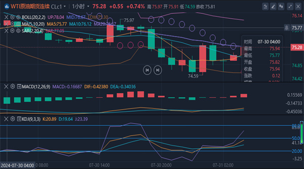油价在200日移动均线75.84美元附近徘徊,该关键技术位可能决定较长期趋势。