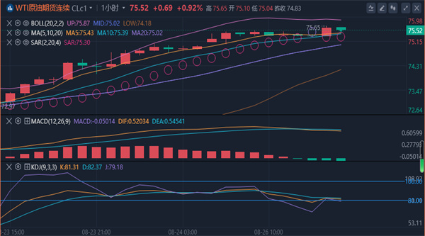 (美无铅汽油05,3.2066,-2.74%,模拟交易)产生重大影响。虽然美国经济数据提供了一些支持,但整体前景仍然悲观,全球部分地区经济放缓和利比亚供应增加继续对市场施加下行压力。市场对美联储9月份降息50个基点的预期有所升温,降息偏向提振原油需求前景;美元指数近期持续走弱,也给油价提供支撑;油价在近半年低点附近的强支撑位附近获得支撑后反弹,技术面出现见底信号,短线存在进一步反弹机会。目前行情建议在75.8位置稳健做空。72.5位置轻仓做多。