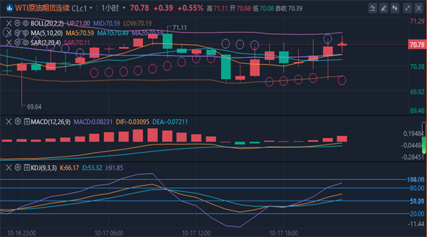 美原油在周四的盘中,高点测压71一线未能站上,欧盘前后又回撤至70附近,日内的整体走势是符合志金给出策略预期的,保留了偏弱的状态,且对前两日的行情也有继续消化的过程。当前美原油