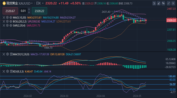 美元/盎司的关口,日内高点回落达10美元,截至发稿,黄金小幅反弹,交投于2312美元/盎司附近。此番价格波动与美元指数的