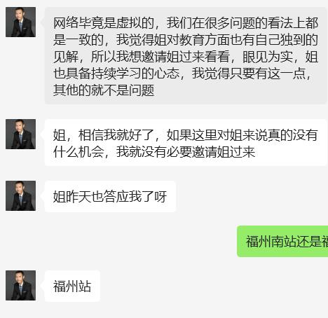 PS:周末被哄到福州贵安新天地,开始说是往教育、金融方向合作,邀请到这里去“考察”一周。周末一直神神秘秘的,具体搞什么也不说,也请我们吃了几顿好饭。后面到周一狐狸尾巴就露出来了,他们来滔滔不绝地说什么这里环境好,扯什么国家政策,然后说着说着就说到交钱去了。后面他说的连锁经营,我查了一下马上结果就全跳出来了。就是传销。叫贵*苑好多都是搞这种的。没想到1040这么老套的传销套路还有人搞。最后第一时间赶紧找了个借口一起逃了出来,追了我们四站路。正好公交车来了直接就上去了。