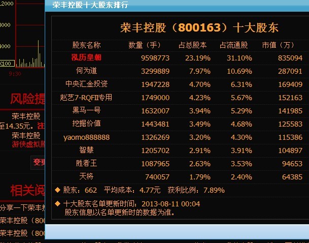 你可知道荣丰现在有多少人?661个股东!!! 你不买,自有人买。别认为你不敢买的股票,就是忽悠你。