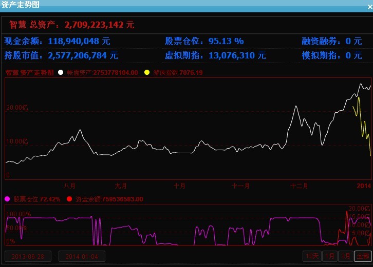 哈。哥2亿起步,半年来,发展到目前27亿。加上财富币,金币,估计30亿吧。几个号,资产平均都翻了八倍以上。多的近20倍。