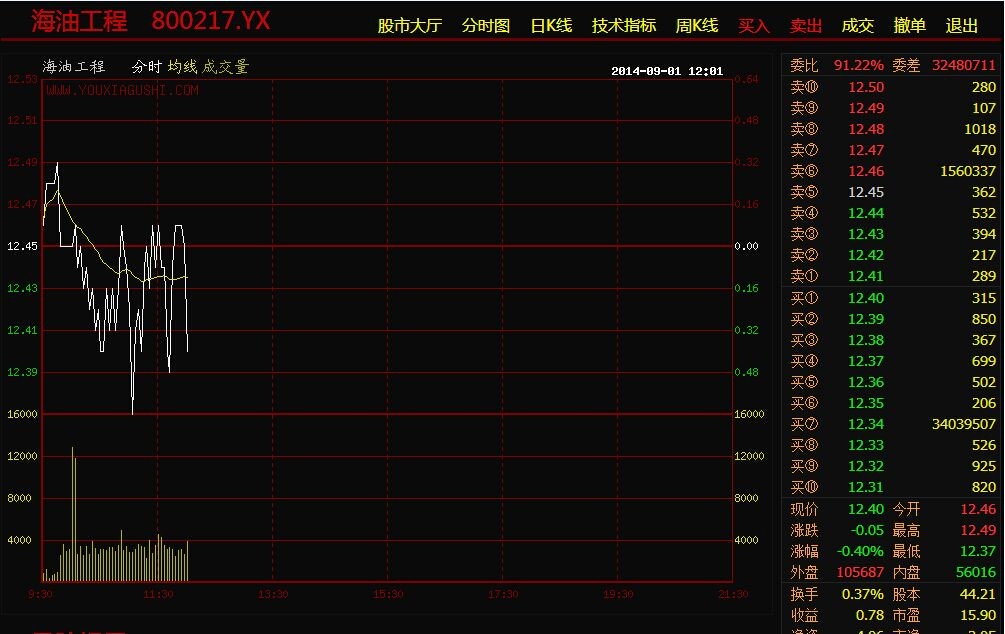 截至今天,海油工程二股东按照惯例亮出大卖单,只是价位比往日提高了一个小数百分点,由原来的承诺价12.45元上升至12.46元,此前一直是众人瞩目的亮点。
