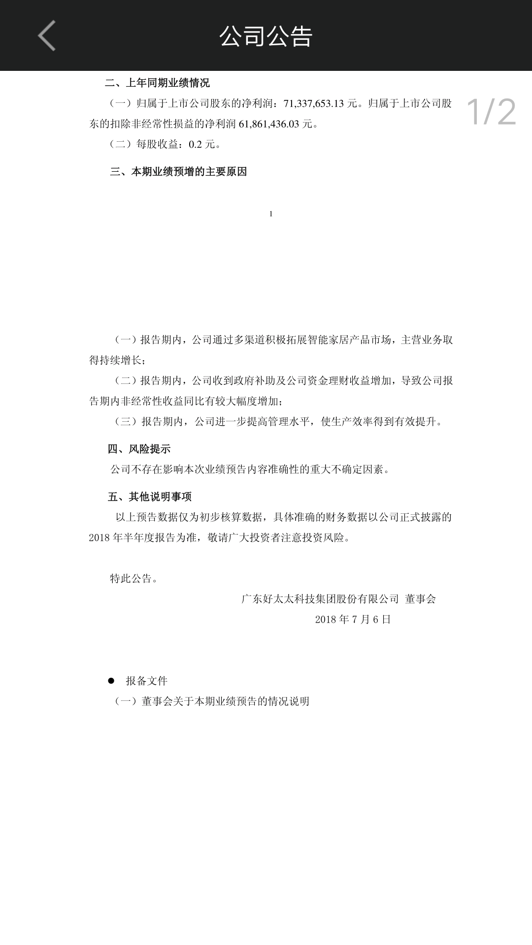 2018年半年度业绩预增公告