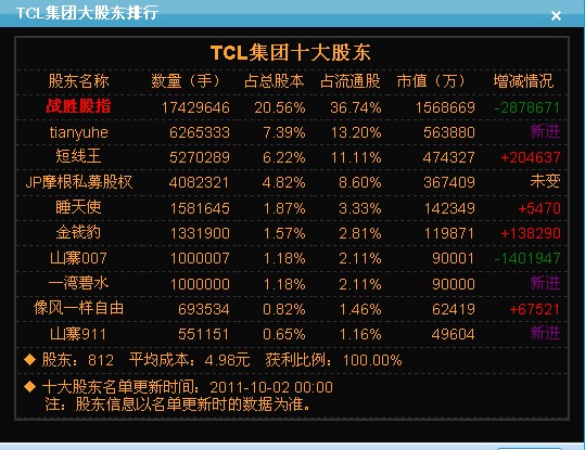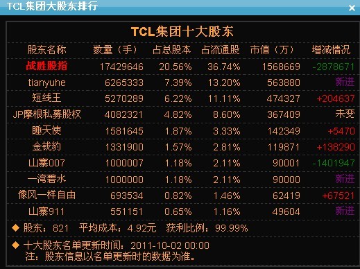 TCL集团上市之日,我们就郑重宣布!我们将维护当日冲锋陷阵的朋友利益。今天下午我们做到了!盈利率第一次达到了100%