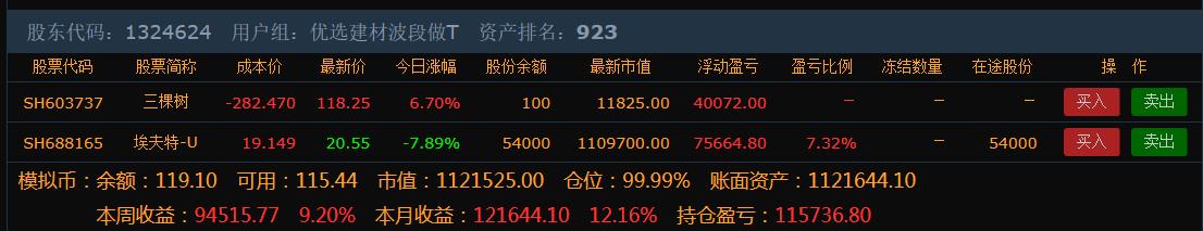 今天感觉大盘不对,早上9点36分抛出三棵树剩余股份,仅剩100股作为底仓。