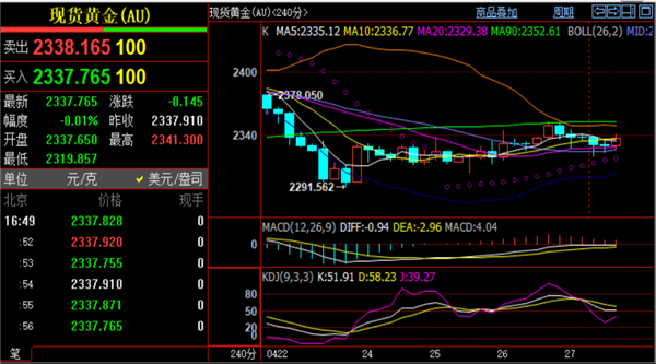 (美黄金06,4719.0,0.41%,模拟交易)价格再次反弹试探早盘高点2336.7位置,若上破则金价