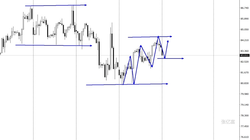 短线处于多空争夺当中,是进一步蓄势破低调整,还是围绕80.60低点之上走启稳回升有待确认,目前日