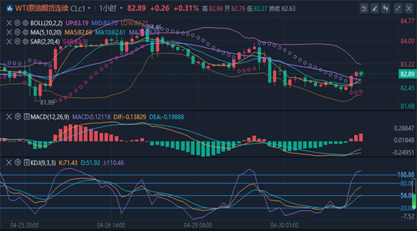 【原油技术面分析】:周二原油价格下跌,亚盘低点触及82.2止跌反弹,实时现报价82.6一线。技术面上原油1小时区间收口,下轨在82关口,上轨83.2一线,白盘先关注这个小区间的破位情况,行情走势向哪边破位可以直接看延续。今日阻力关注小时布林带83.2,其次看日线布林带中轨粘合SAR指标压制点84关口,4小时布林带上轨84.5和周线MA120均线85.2位置算是两个防守阻力节点。支撑方面留意小时线下轨82和4小时下轨81.8形成的支撑范围,下破则确认弱势,下方参考日线布林带下轨80.9和日线MA60均线80.6形成的支撑范围,更低位看80整数关口。整体思路来看,油价没能向上破位85和85.5区域压制,主思路延续看跌不变。原油策略:原油建议83.2-83.8分批做空,止损84.5,目标81.8-81.3,下破持有;低位触及81.2-80.8分批做多,止损80,目标82.2-83,破位持有;