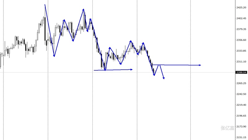延续承压。4小时图一波连阴下挫符合我们看跌预期,之前强调到的B浪反弹修正,构造C浪下跌,以2290低点做为临界点,跌破则延伸C浪调整空间,今日关注空头延续。综合以上分析,张亿富认为:黄金如期下破,今日重点关注空头延续,操作上考虑反弹做空为主,上方关注2307-2315美元阻力,下方关注2280-2270美元/盎司支撑。
