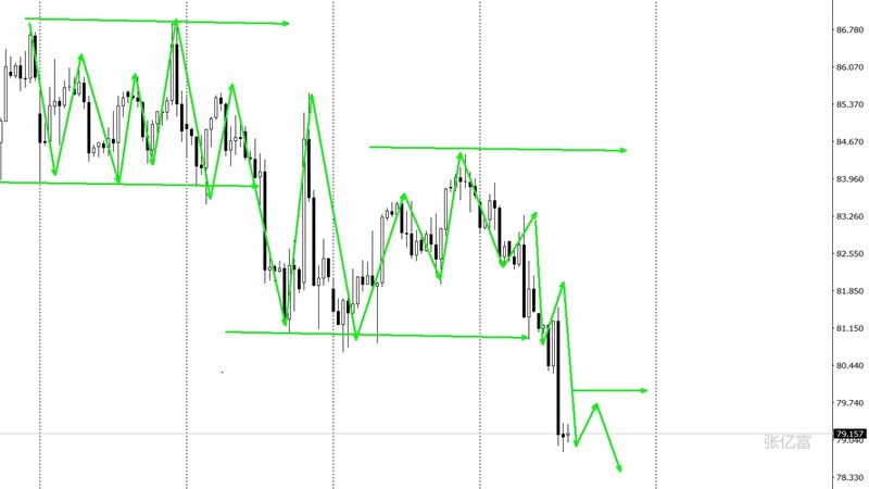 (美原油(美原油06,94.30,1.38%,模拟交易)05,102.76,1.18%,模拟交易)延续承压中。四小时图小级别的台阶震荡下行,此前的整理蓄势之后,近期连续放量下挫,尾盘还进行了一个短暂式的反抽形成台阶次高点,最终形成破低下行,形成第二个台阶阻力位打压。综合以上分析,张亿富认为:原油连续下破,空头延续,今日操作上考虑反弹做空为主,低多为辅,上方关注80.7-81.5美元/桶阻力,下方关注78.3-77.5美元/桶支撑。