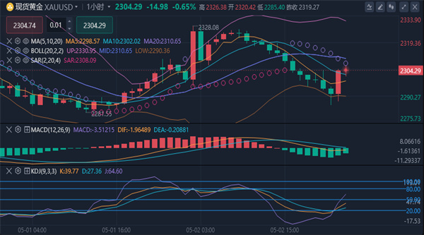 金价格遇阻回落修复指标,实时现报价2300一线。黄金价