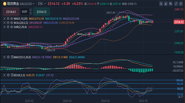 (美黄金06,4720.9,0.45%,模拟交易)窄幅震荡,目前交投于2313
