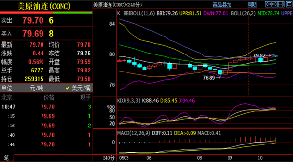 油价格上涨破位周初79关口压制点,市场明显偏向看涨油价