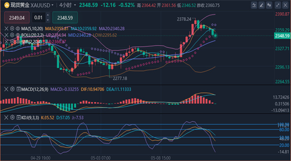 均线重合阻力点2360一线,1小时SAR指标延伸点重合今日高点位于2364一线,4小时布林带上轨承压2374,与上周高点2378位置算是第二个防守阻力范围,若向上破位则需要关注日线布林带上轨2395和2400关口形成的压制区域阻力。支撑方面留意4小时布林带中轨2339和日线布林带中轨2335形成的支撑区域,同时4小时MA120均线与日线MA5均线也基本重合位于2335附近,向下偏差5个点参考4小时MA30均线位置2330做为防守支撑节点,更下方看4小时MA60均线2320支撑节点。整体来看,黄金价格