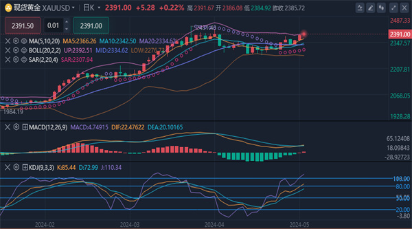 【黄金技术面分析】:黄金日线来看,日K之中,随机指标目前保持金叉状态;金叉则是主多信号;因此,