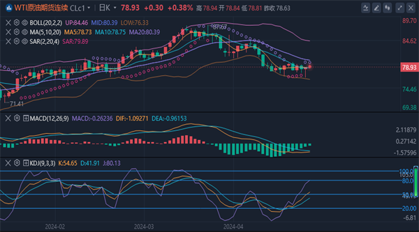 【原油技术面分析】:原油日线来看,上周三下探76.8附近后迅速拉升,日线收了一根下影线较长的锤子线,走出了止跌回升的信号,但是始终没有突破80关口,周五逼近80关口后一度下跌1.72%,不过周一并没有延续上周五的跌势,而是反弹站上79关口,目前来看油价大概率会站上80关口。四小时线来看,周一油价在77.7一线开始走反弹,最终站上79关口,目前布林带收口,油价处于中轨之间,KDJ金叉后向上发散运行,MACD也形成金叉,能量柱翻红,整体走势比较强。目前原油需求情绪乐观,而且欧佩克+减产也对其产生支撑,油价上周在76.8附近获得支撑后上行,目前暂时受阻于80关口的阻力,但是在经过蓄力后应该能够冲上80关口并站稳,所以目前还是以看多为主。综合来看,原油今日操作思路上建议以回调做多为主,反弹做空为辅,上方短期关注80.0-80.5一线阻力,下方短期关注77.5-77.0一线支撑。