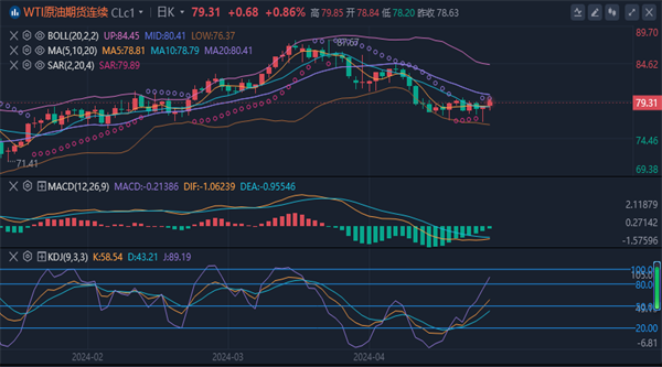 均线重合点77.5一线,建议上方短期关注80.5-81一线阻力,下方短期关注77.0-76.0一线支撑。