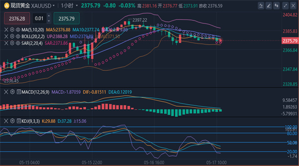 (沪金2606,1040.76,2.03%,模拟交易)收盘位于2380美元/盎司下方。现货黄金周四收盘下跌8.52美元,跌幅0.36%,报2376.76美元/盎司。周四亚市盘中,金价一度触及2397.44美元/盎司,创下日内高点;随后金价便呈现持续下滑态势,纽约时段早盘,金价最低跌至2370.77美元/盎司,刷新日内低点。三位