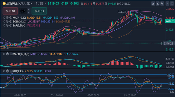 【黄金技术面分析】:黄金从技术面上来看,周线连续收阳,整体结构指标上依然多头格局。日线依托布林带上轨上涨,价格上破历史高点2449,布林带整体向上运行,短期