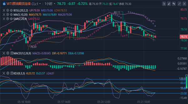 油价在周二(5月21日)亚洲时段扩大跌幅至每桶78.70美元左右,此前中东近期有事态发展,但伊朗总统在直升机坠毁中去世,以及沙特国王的健康问题似乎并未影响市场。尽管上周美国消费者通胀数据降温,但