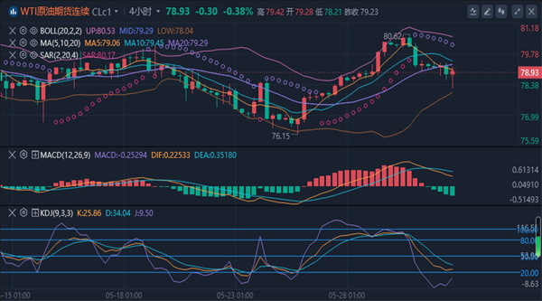 油价震荡下跌后反转,盘中报79.22美元每桶,跌幅0.01%。此前有迹象显示,强劲的美国经济活动可能使利率在较长一段时间内居高不下,可能影响原油
