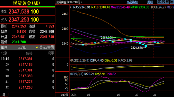 金价格触及2341止跌反弹,目前实时现报价2347一线,日内黄金