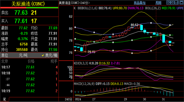 油价下破76,甚至出现更低价格。白盘原油的思路很简单,防守78.2和78.7阻力节点继续看跌,下方的支撑依次关注76.8和76关口,若向下破位直接顺势看新低。日内原油策略:反弹78.1做空,78.7补仓空单,