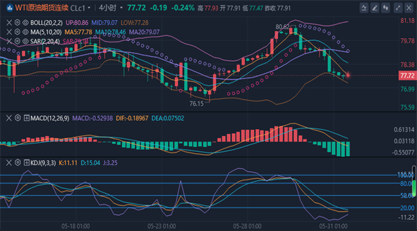 美原油一度刷新近一周低点至77.47美元/桶。美国石油协会(API)周三公布的数据显示,截至5月24日当周原油库存预估下降650万桶,此前一周小幅增加180万桶。