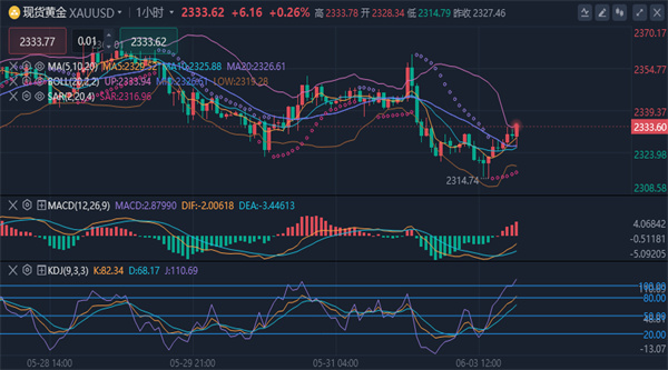 美元下方承压,日内最低触及2314美元水平,日内波动幅度在15美元左右。尽管五月份金价