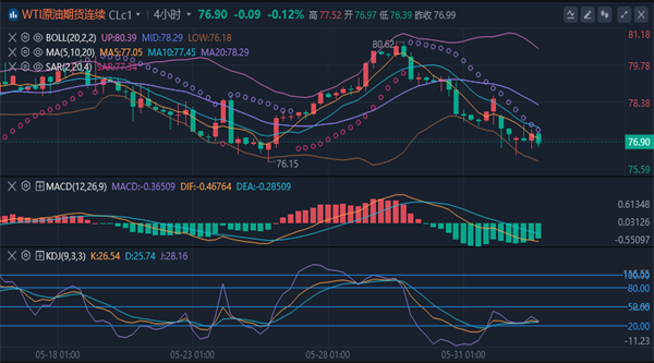 美原油小幅下探,一度刷新逾一周低点至76.39美元/桶,但仍坚守在5月24日创下的近三个低点76.16美元/桶上方,由石油输出国组织(OPEC)和以俄罗斯为首的盟国组成的OPEC+产油国集团周日同意将大部分深度减产措施延长至2025年,给