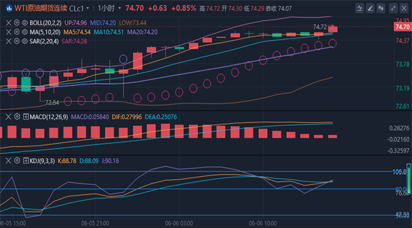 油价从四个月低点反弹,并上涨超1%。#原油收盘#WTI 7月原油期货收涨0.82美元/桶,涨幅大约1.12%,收报74.07美元/桶。截至发稿,现报74.11美元/桶,涨幅1.17%。