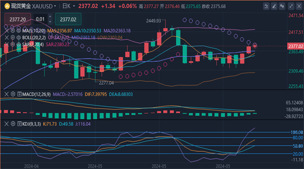 短线走势偏强。综合来看,今日黄金短线操作思路上 建议反弹做空为主,回调做多为辅,上方短期重点关注2385-2390一线阻力,下方短期重点关注2360-2355一线支撑。
